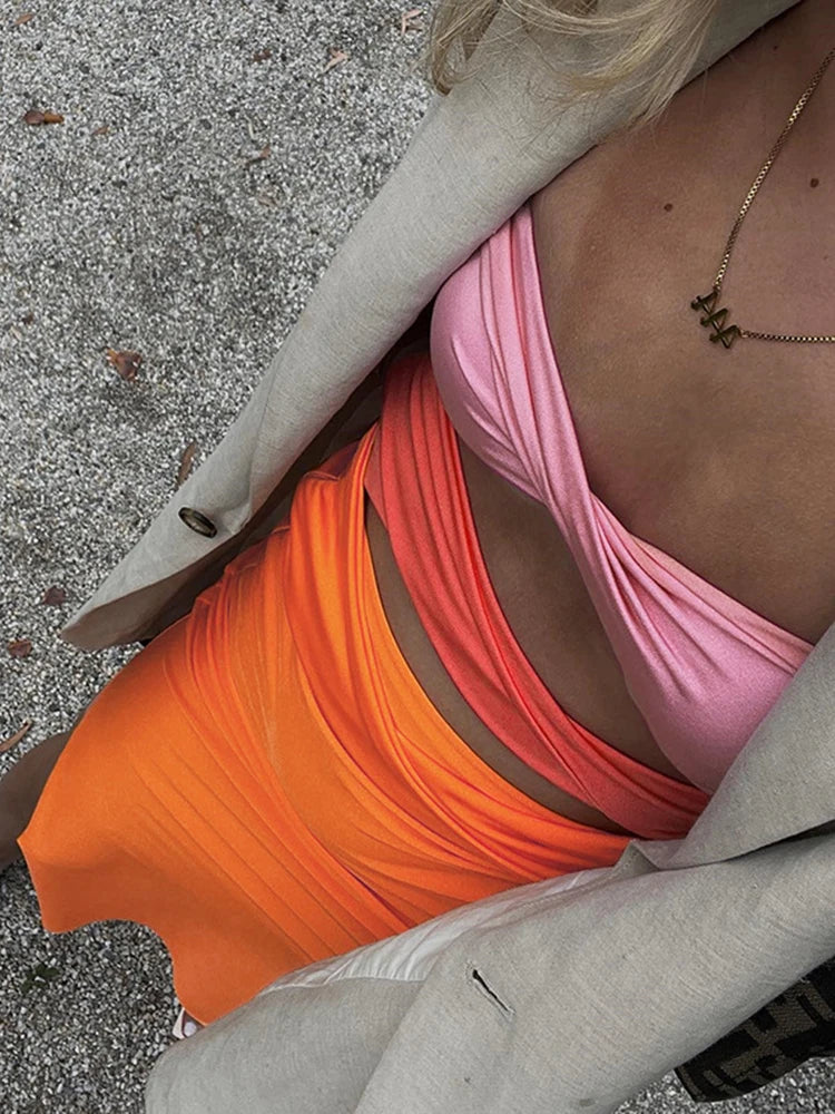 Turn heads in the Aliya Sleeveless Cut Out Dress, a vibrant statement piece perfect for sunny days and glamorous evenings. Featuring a bold color-blocked design with a ruched midi-length skirt and a strappy bandeau-style top, this dress exudes effortless charm. The flattering cutout detail adds a playful edge, making it ideal for rooftop parties, beach side strolls, or a casual brunch with friends. Pair it with minimal heels and layered jewelry for a show-stopping look.