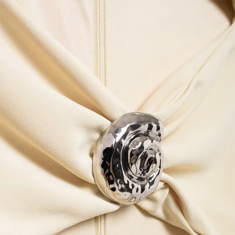 Radiate sophistication with the Alejandra Elegant Slim-Fit Dress, a modern masterpiece that combines elegance with intricate detailing. This sleeveless design features captivating cutouts at the bodice, adorned with shimmering silver accents for a touch of glamour. The textured knit fabric hugs your silhouette beautifully, while the flared A-line skirt offers a graceful finish. Perfect for weddings, evening events, or any occasion where style meets sophistication, this dress is a true showstopper.