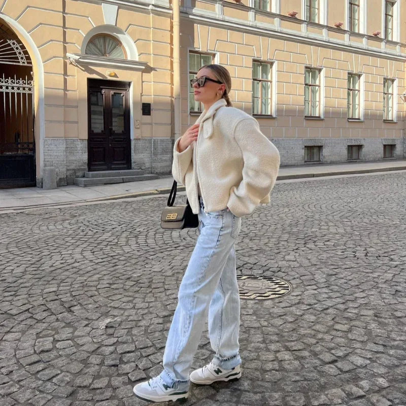 Stay cozy and stylish with the Ayla Fleece Jacket, a must-have for effortless layering. Designed for both warmth and fashion, this jacket features a relaxed fit, plush fleece fabric, and a classic zip-up front. The oversized collar adds an extra touch of comfort, making it perfect for chilly days. Whether you're pairing it with denim for a casual look or layering it over activewear, this jacket blends versatility with timeless style.