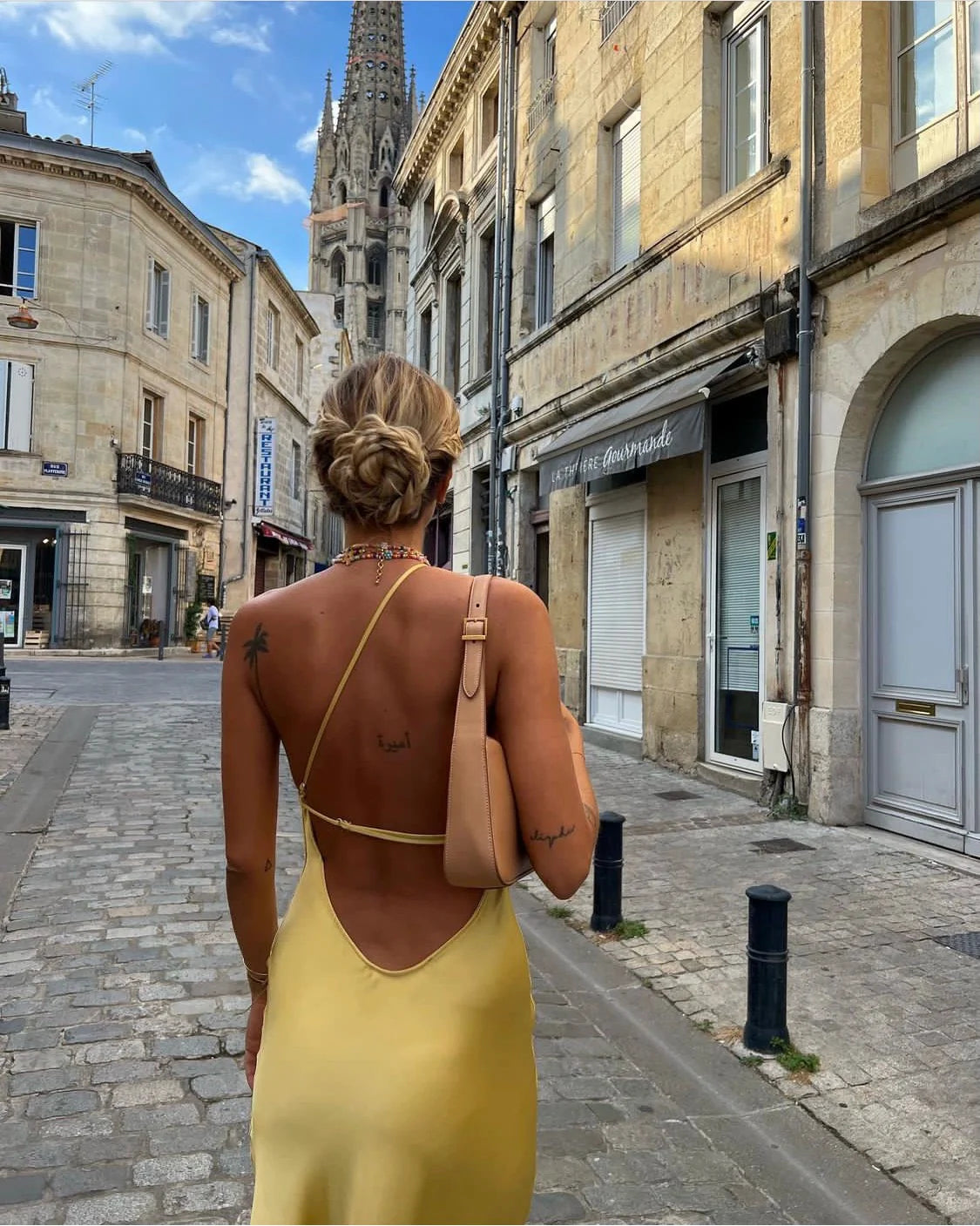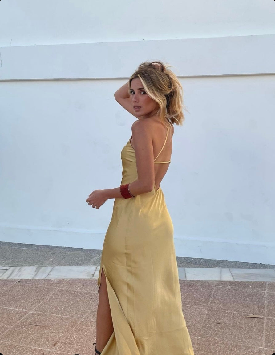 Elegant and effortlessly captivating, the Arely High Slit Dress is the epitome of refined glamour. Crafted from a silky, lightweight fabric, this dress drapes beautifully over the body, highlighting the silhouette with a fluid, floor-length design. The daring thigh-high slit adds a touch of drama, while the delicate open-back detail with crisscross straps enhances its ethereal allure. Perfect for sunset soirées, beachside dinners, or destination weddings, this dress pairs seamlessly with strappy heels and minimal jewelry for a sophisticated, timeless look.