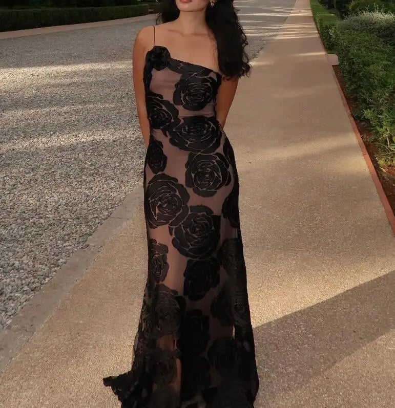 Make a statement in the Avianna Slanted Maxi Dress, designed to turn heads with its effortlessly chic silhouette. Featuring a striking asymmetrical neckline and a flowy, floor-length fit, this dress exudes sophistication with a modern edge. The sheer, slanted overlay adds a touch of allure, making it the perfect choice for evening events, elegant dinners, or special occasions. Pair it with minimal jewelry and sleek heels for a look that’s both bold and refined.