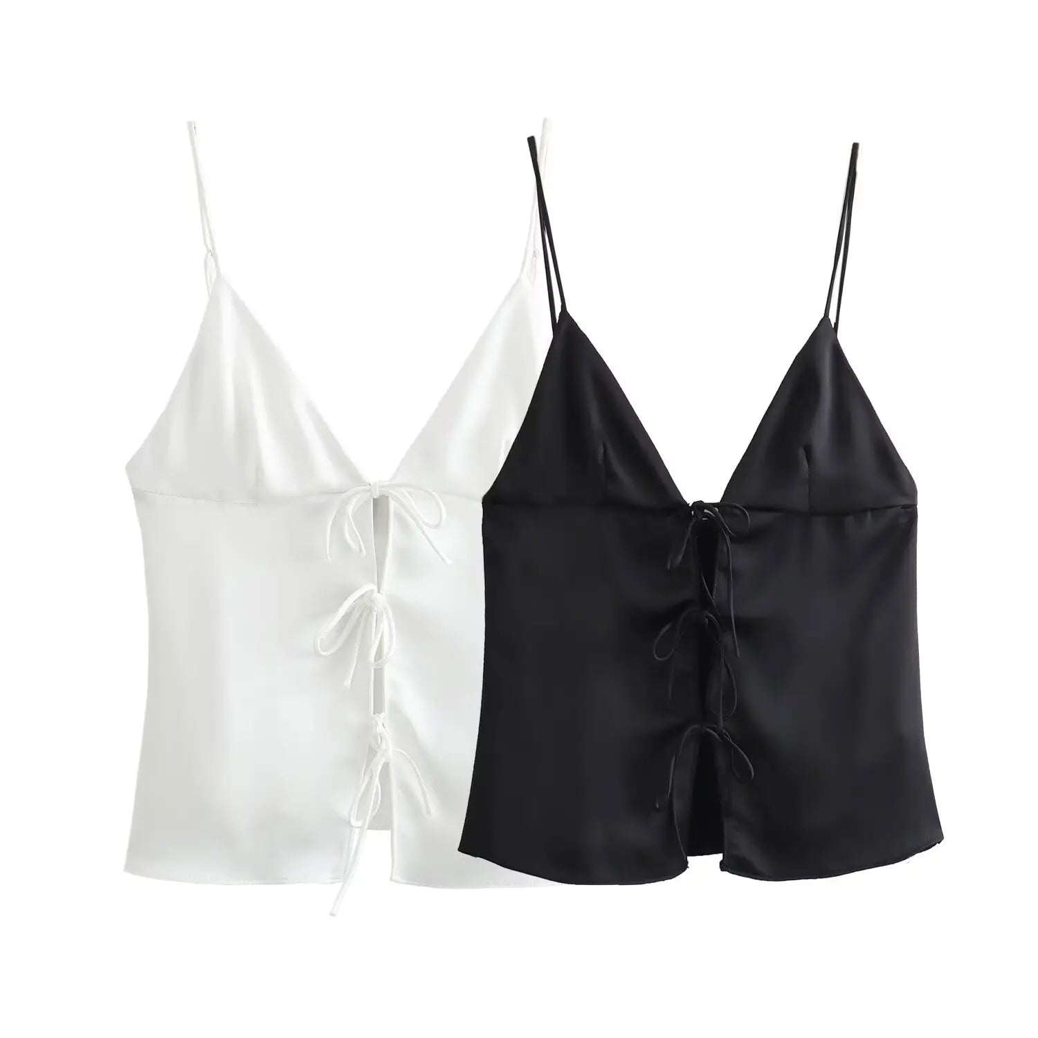 Kaia Satin Front-Tied Top