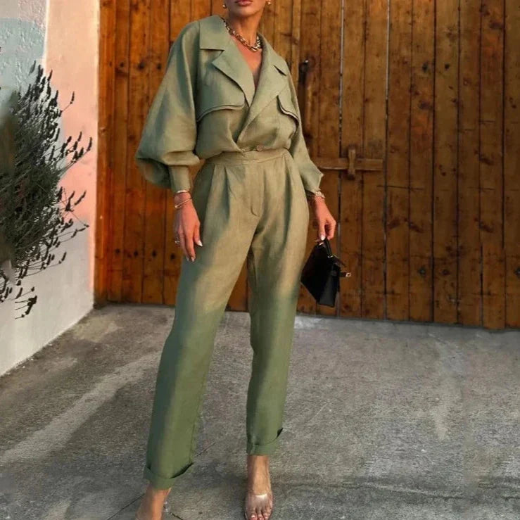 Command effortless style with the Amiah Two-Piece Set, a perfect fusion of structure and relaxed elegance. This set features a button-up collared top with rolled sleeves for a laid-back yet polished look, while the high-waisted trousers cinch at the waist with a matching belt to accentuate your silhouette. The breezy, tailored fit makes it ideal for both casual outings and elevated occasions. Pair it with heels and a structured bag for a refined ensemble or dress it down with sneakers for a chic daytime vibe.